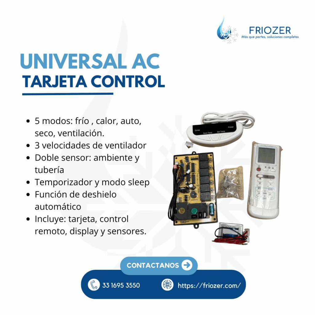 La universal AC tarjeta control es la alternativa práctica para darle nueva vida a tu aire acondicionado, sin necesidad de reemplazar todo el equipo. Es económica, confiable y fácil de conseguir, siempre que se instale por un técnico especializado.